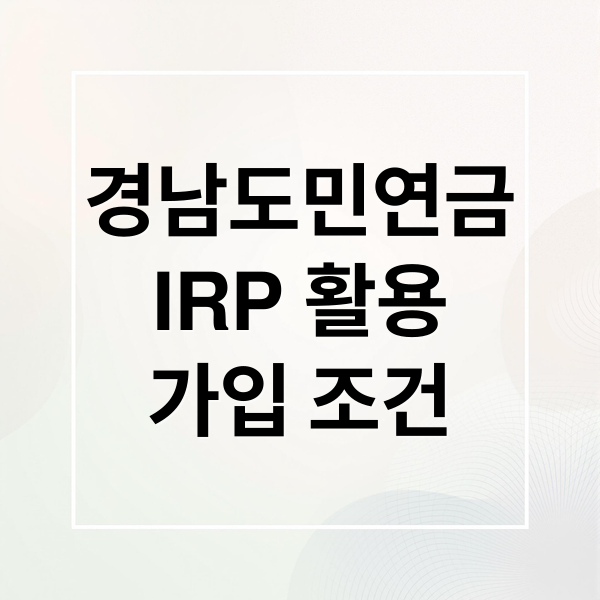 경남도민연금 A to Z: IRP 활용, 가입 조건, 신청 방법 완벽 가이드